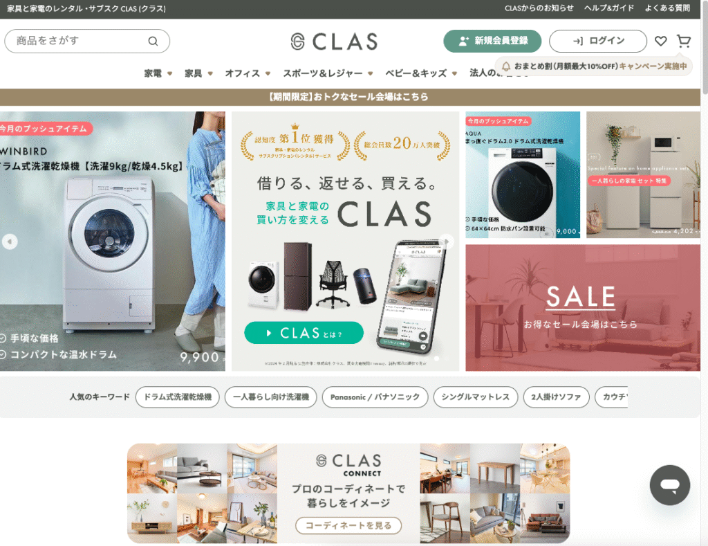レンタル家電やレンタル家具のサービスを展開している「CLAS(クラス)」。